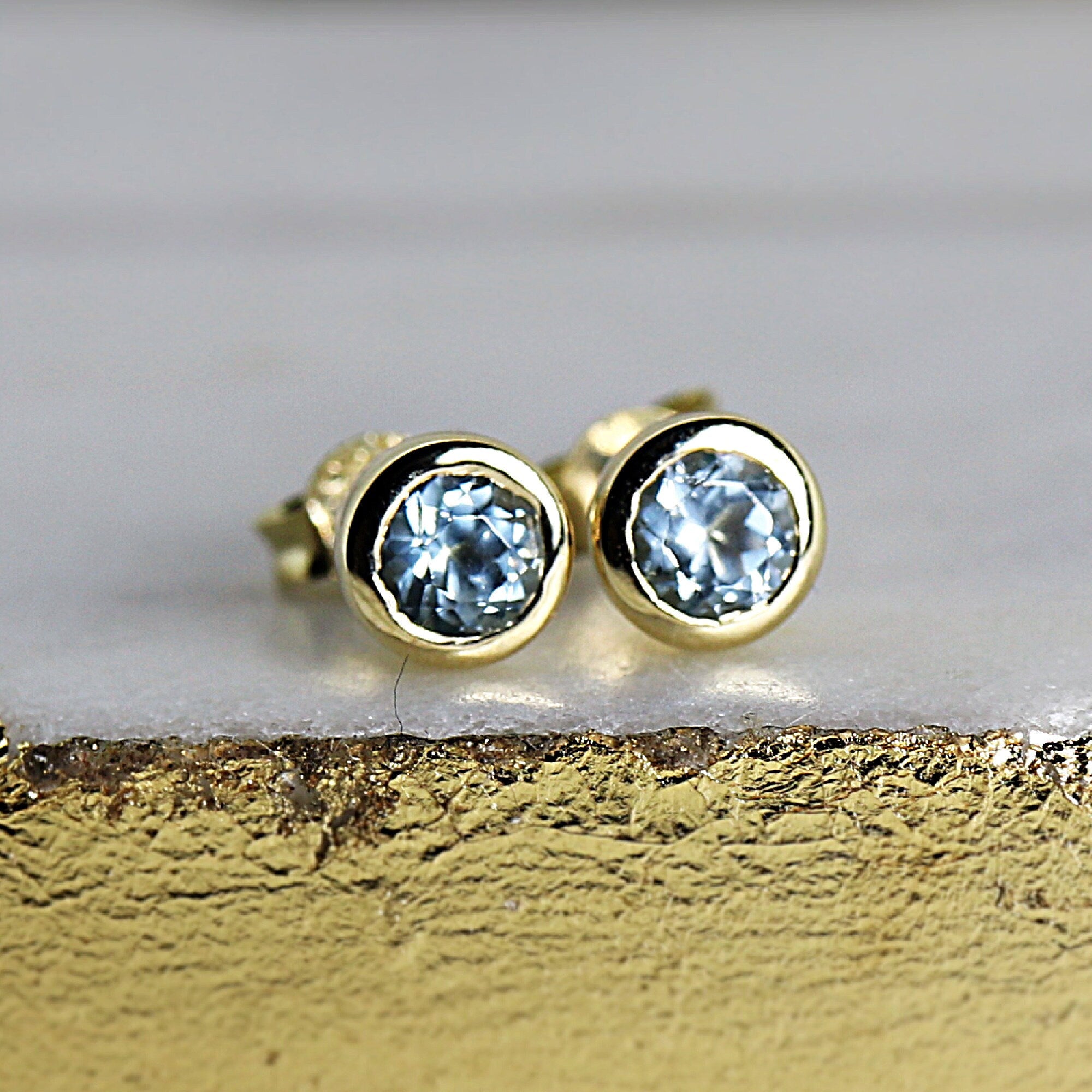 14k Gold Bezel Set Aquamarine Stud Earrings