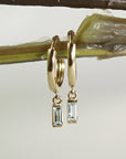 Featuring beautiful aquamarine baguette gemstones, these earrings are designed to catch the light and sparkle with every movement. The delicate hoops add an extra level of detail, making these earrings a truly unique and eye-catching accessory.