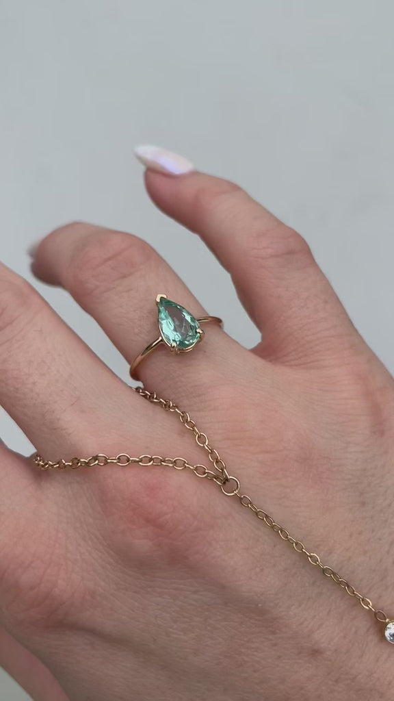 Pear Green Tourmaline Ring in 14k Gold, Mint Teal Tourmaline Engagement Ring