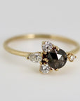 Handcrafted Rose Cut Salt and Pepper Diamond Cluster Ring