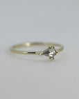 One of a kind, kite rose cut salt and pepper diamond is featuring in a 14k yellow gold prong setting and 14k yellow gold band. Diamond is natural and sparkles.